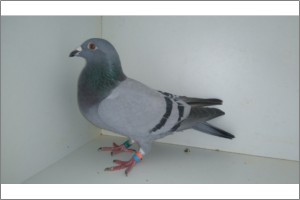 "727 x Choquinha" Raça: Bernardo Sousa Fêmea Azul PAI: Filho do "Crack 40" x "12" (16ª NACIONAL DE M/F, 2009 e Irmã da Campeã Nacional M/F em 2009). MÃE: Filha do "154/08", 8º Classificado Velocidade 2010 (atrás de 5 companheiros de pombal!) com: 3º Pavia III; 3º Aivados I; 7º Vendas Novas(...). Meio Irmão 384/10:UM SUPER CRACK!!! VENCEDOR DO ALGOZ, 2012 ACDP (+- 50 000 POMBOS). 100% Bernardo F. Sousa