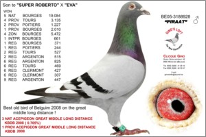 "PIRATINHA" - ÁS MIRA 2014" Fêmea Azul Voos Brancos LINHA DO "PIRAT", DE GINO CLIQUE POMBO ÁS MIRA - FCI GVN, 2014 9º/1000p 18º/991p. 1º/948p. 35º/922P. ..... ................................. Cruzamento A. UDO x Gino Clicque x Van Loon x Janssen