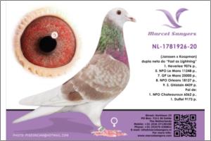 Marcel Sangers (Janssen-Koopman) Dupla neta do "Fast as Lightning" 1.Heberlee 9.076 p., 5. NPO Mans 11.248 p., 7. GP Mans 25.000 p., 8. NPO Orlea 18.127 p., 9. Ghislain 4.439 p. Pai de: 1. NPO Chat. 6.062 p., 1. Duffel 9.173 p.