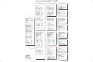 Marcel Sangers (Koopman) Pai – NL04-1389554 “Chen” (Original Koopman) filho de “Kleine Dirk” Campeão Nacional da Holanda 1999, 1º Nacional Troyes NPO 17.883 p.; 1º Nacional Bourges 7.155 p.; 1º Maaseik 3.522 p. Mãe - NL02-2373099 "Daughter Golden Lady" Excelente reprodutora! Filha da "Golden Lady” Reprodutora n.º 1 de C & G Koopman