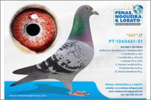 "The Provincial" 1. Distrital Sabugal (221 km) 14.481 p. Cedido em 2019 para a China. Irmão legitimo da Crack 40” 1-1-3-4-5- 6-7-7-10-14-14-26-26-etc. Anilhas Ouro Geral e Meio-Fundo, "39" Anilha Ouro Velocidade e Anilha Bronze Geral,