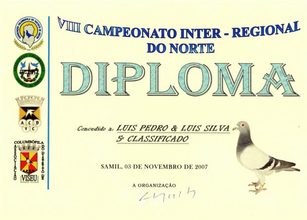 Teve hoje lugar, no salão nobre da Associação Columbófila do Distrito de Aveiro, a Festa do Campeonato Inter-Regional 2007.