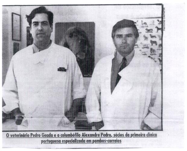 O Veterinário é o Dr. Pedro Geada, de 38 anos, com consultório numa artéria central de Lisboa, o Especialista e Assistente o Sr. Alexandre Pedro, de 42 anos, há 30 anos ligado á Especialidade e Pombos-correios.