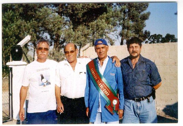 Amigos Columbófilos de Barreiro da Esq para a Direita: Engº Capela da Costa (Juíz Classificador Internacional), Damião, Diogo Ferrer Calado (Campeão Geral 2002, Grupo Coll. Banheirense), António Rodrigues ( O Brioso)