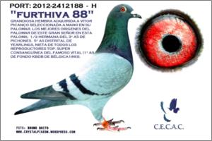 "LA FURTIVA" Raça: Janssen/Gaby/kannib. GRANDIOSA HEMBRA ADQUIRIDA A VITOR PICANÇO SELECCIONADA A MANO EN SU PALOMAR. LOS MEJORES ORIGENES DEL PALOMAR DE ESTE GRAN SEÑOR EN ESTA PALOMA: 1/2 HERMANA DEL 3º AS DE PICHONES. 5º AS DISTRITAL DE YEARLINGS, NIETA DE TODOS LOS REPRODUCTORES TOP. SUPER CONSANGUÍNEA DEL FAMOSO VITAL (1º AS DE FONDO KBDB DE BÉLGICA1993).