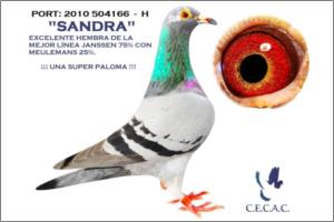 "PAMELA" Raça: JANSSEN Nieta de cuatro palomas importadas de los palomares de los hermanos Janssen de Arendok. EL PERFECTO, LA SANDRA, EL ARJAN II Y LA MARYAN.