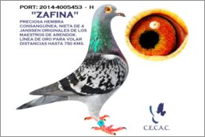 "ZAFINA" Raça: JANSSEN PRECIOSA HEMBRA CONSANGUÍNEA, NIETA DE CUATRO JANSSEN ORIGINALES DE LOS MAESTROS DE ARENDOK. SUPER LÍNEA DE ORO PARA VOLAR DISTANCIAS HASTA 750 KMS.