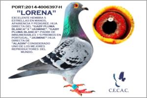 "COMPUESTA" Raça: GABY VANDENABEELE EXCELENTE HEMBRA FISICAMENTE, 4º AS PALOMA PICHONES 2013, MEDIA HERMANA DE SKY GODESS, 4º AS PALOMA DISTRITAL INTERZONAS MEDIO FONDO 2014.