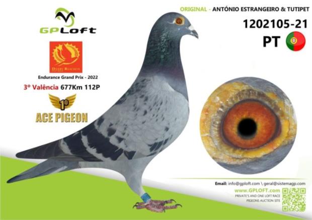 Em LEILÃO 1ºPOMBO ÁS ENDURANCE GRAND PRIX 2022 https://www.gploft.com/en/pigeons-auction/auction/1856/47910.aspx