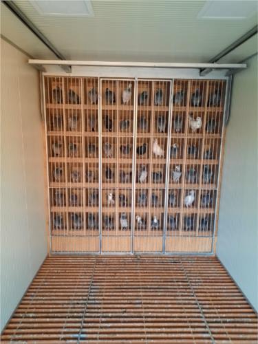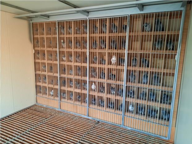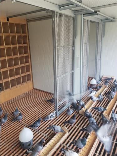 AMBOS OS POMBAIS ESTÃO EQUIPADOS COM PORTAS DE ELASTICOS QUE SERVEM DE DIVISÃO PARA CORREDOR E RECUAM PARA FECHAR AS FEMEAS NO XADREZ