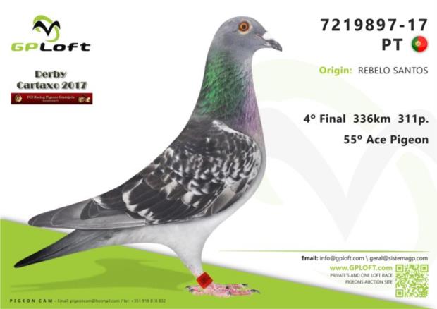 4º Classificado Derby Cartaxo. Veio no bando de 4 pombos que chegaram ao mesmo tempo, mas foi o último do grupo a entrar.