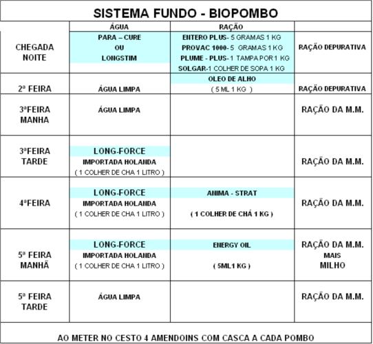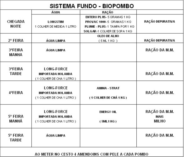 Em princípio CARBO é dado até os pombos voarem bem o suficiente, uma hora aproximada por dia.