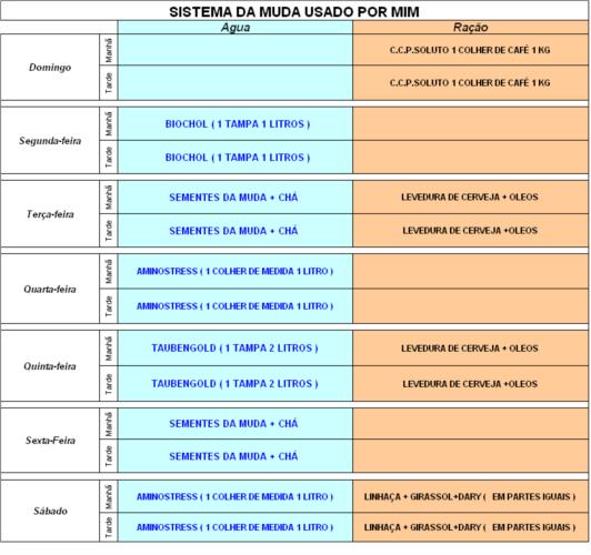 de reprodução e muda : 2 a 3 vezes por semana