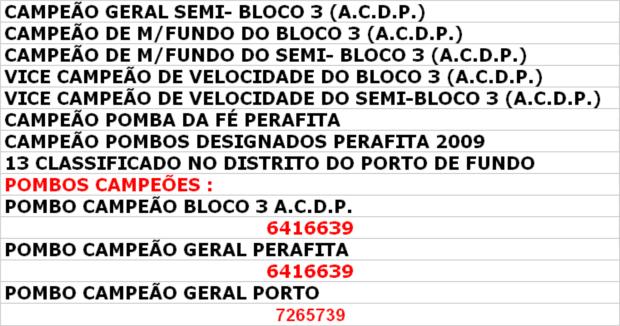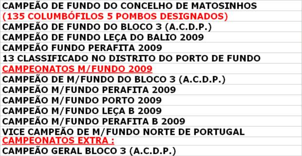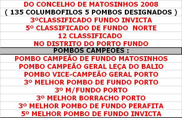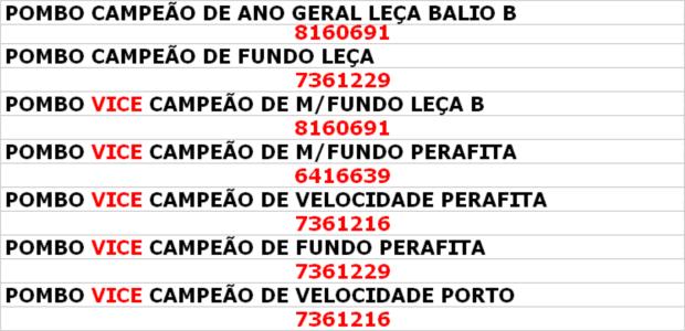Resultados obtidos no Asas de Portugal pelos meus pombos através da minha condução da colónia de voadores e reprodutores :