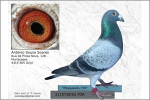 | Pai: 2110739/02 POR - "MOSQUEADO 739" | Mãe: 6351953/06 POR - "AZUL 53" | "MOSQUEADO 739" Raça: A.SOARES Tipo: Reprodutor BOM VOADOR EM V.e M.F PAI DA CAMPEÃ DE FUNDO 2007.