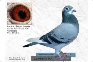 | "ASA-BRANCA 01" FILHA DO 579917/00 X 579910/00,IRMÃ E MEIA-IRMÃ DE POMBOS VENCEDORES DE 1.ºs PRÉMIOS E DEZENAS NA SOCIEDADE E BLOCO ENTRE MAIS DE 6000 POMBOS.