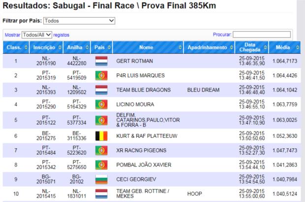 | Resultado com 1 unico pombo enviado ao grande derby Algarve 2015 foto da femia. |