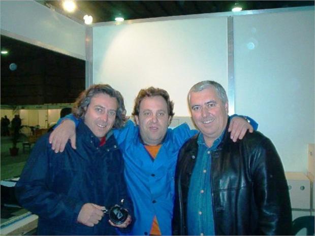 Mário Real e Carlos Paxim na Expo-Rainha com Zé Manel como fundo...