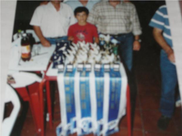A mesa com os Troféus conquistados na Campanha de 2002, a nível de clube ( em 21 concursos, fiz 14 x 1º )