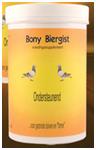 BONY MINERALEN MIX possui uma fonte mineral completa, micronutrientes e aminoácidos, necessários na alimentação diária. Esta composição rica em ingredientes naturais, dá-se aos pombos durante a criação, concursos e muda, este último é um período de repouso onde os pombos conseguem recuperar e reconstruir mais rapidamente as suas reservas. Tem também na sua composição, algas marinhas, calcário, concha de ostra, grites, argilas, minerais, ácido láctico, fermento láctico, migalhas de pão, micronutrientes, grãos portadores de óleo, oregano, Cu, Fe, Zn, Mn, Co, I, Se e vitaminas A, B1, B2, B6, B12, D3 e E. A aceitação deste produto pelos pombos é muito alta (90-100%) entre os adultos e os borrachos. Encurta o período de muda, dá uma bela plumagem, melhora a condição e dá-lhes um esqueleto sólido. Esta mistura de minerais prevê a necessidade total dos pombos em relação aos minerais, grit e bloco salgado.