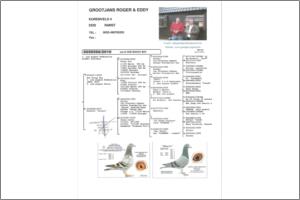 GROOTJANS & EDDY Este macho resulta de um cruzamento dos melhores pombos desta colónia de enorme renome mundial. O sangue do Sergio, reprodutor base desta colónia, está aqui presente e o pai deste macho foi um dos destaques da columbofilia belga em 2010. Do melhor da Bélgica dos últimos anos