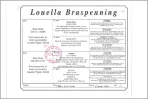 BERT BRASPENNING - LOUELLA PIGEON WORLD Macho que tem o melhor sangue de Bert Braspenning cruzado em regime de consanguinidade. Neto do De Felle e do Compas e bisneto de pombos Top Mundial, tais como Van Moorsel e Leontien. Pombo escolhido a dedo para produzir pombos para provas rápidas