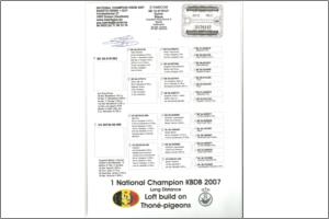 LUDO CLAESSENS/CIC Macho muito consanguíneo da Zus 03, fêmea que juntamente com o Blauwe 84 formaram o melhor casal do mundo dos últimos anos. Este pombo é duplo neto da Zus 03 e bisneto do Simple The Best, o mais destacado voador de todos os tempos, também ele filho da Zus 03