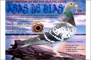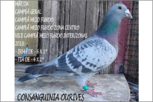 - tia do meu famoso OURIVES que em borracho no ano 2008 ganhou. - 3 anilhas de OURO. - Asa de bronze. - 9º melhor pombo de zona. - 2º melhor macho.