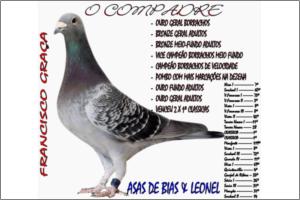 "MOSQUEADO IRMÃO DO COMPADRE" Macho este macho é irmão legitimo do compadre vou voar com filhos pela primeira vez este ano antes estava em posse do luis batista que tem uma filha na reprodução e uma outra filha foi a melhor voadora de fundo de um nosso amigo de nome clemente com 2º grande fundo 3º grande fundo entre outras classificações é tambem avô do melhor voador de outro amigo espanhol de nome jesus