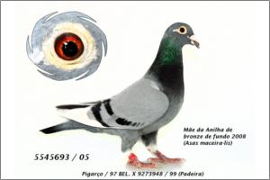 Um dos pombos base da colónia Avô da anilha de ouro distrital de 2007 Pai do 5º melhor pombo de meio-fundo de 2006 Cheguei a ter cerca de 70 filhos, netos e bisnetos a voar