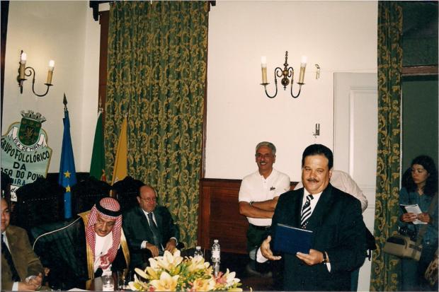 Na Biblioteca Municipal Alvaro de Campos em Tavira Distinção à Sociedade Columbófila Luzense, proposta aprovada pela Câmara Municipal Da esquerda :Jorge Alegre - José Macário Correia - Marcelino Teixeira - Carlos Baracho - Sr. Gaspar
