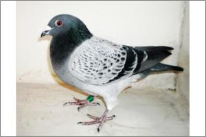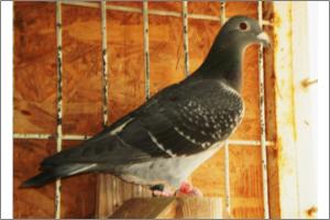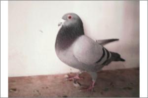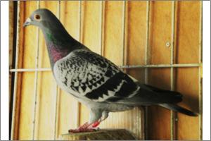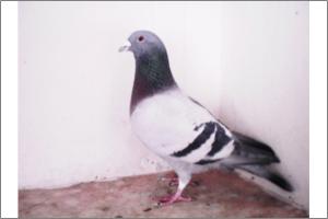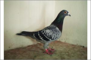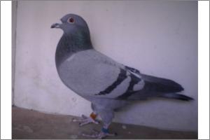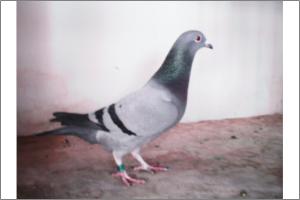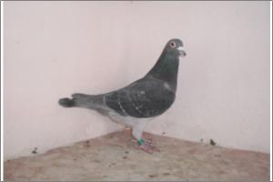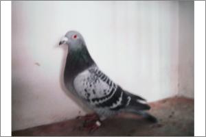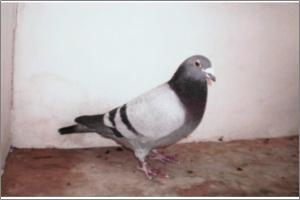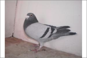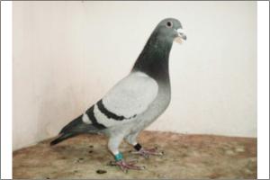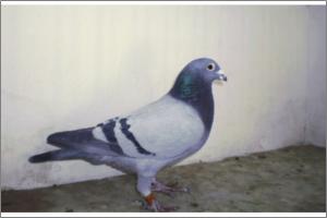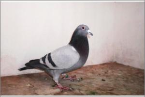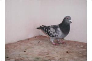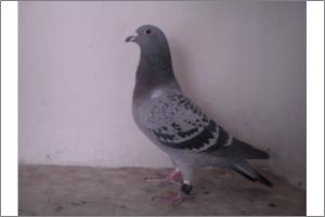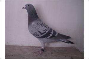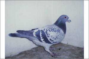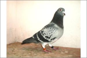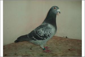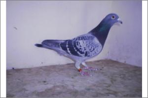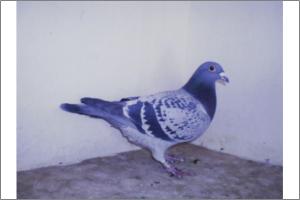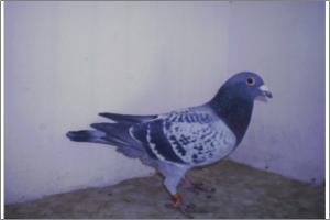 "O NETO DO GRANDE" Raça: JOSÉ AUGUSTO AMORIM Côr: AZUL MOSQUEADO Foi adquirido no leilão promovido pelo Sr. José Augusto da Silva Amorim em sua casa.Este pombo é neto do Grande e filho da Feia, linhas que foram a base de toda a colónia.