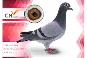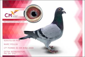 "Marc Polin" Macho Azul Chumbo Tipo: Reprodutor Pombo concorrente nas compeonatos de Mira 2009 pela equipa Queijaria Cachopas ficando classificado em 17º Pombo Ás; Filho de um dos Exelentes casais de reprodutores do pombal.