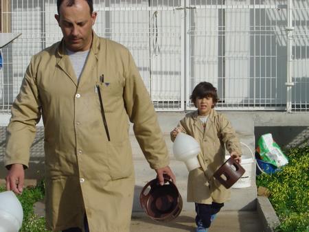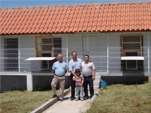 O Pai do Rui Lobato, Camilo, Rui Lobato e o meu filho Bernardo. Visita destes em 2005 aos meus pombais