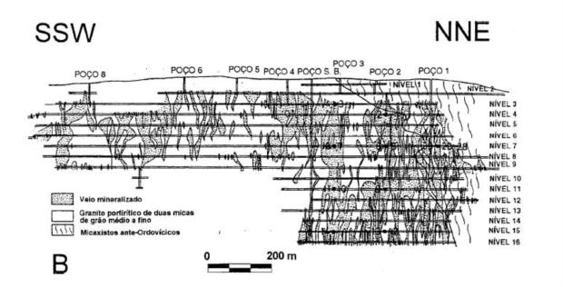 Aqui eram extraídos essencialmente o ouro e a prata. A entrada para a mina era feita pela estrutura que ainda podemos apreciar e que manobrava dois elevadores no Poço de Santa Bárbara com 620 metros de profundidade. Esta estrutura, conhecida localmente como a Torre Eiffel de Jales. Próximo temos ainda a enorme e muito poluente escombreira, com uma área de cerca de 8 hectáres, onde foram lançados os estéreis da mina que se calculam em cerca de 5 milhões de toneladas com uma elevada acidez, falta de nutrientes e uma elevada toxicidade em metais pesados e metalóides (arsénio, chumbo, cádmio, zinco e prata). Estes são alguns dos sinais ainda existentes do que foi outrora uma das mais importantes estruturas mineiras de Portugal