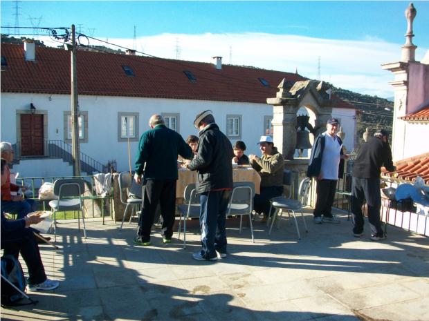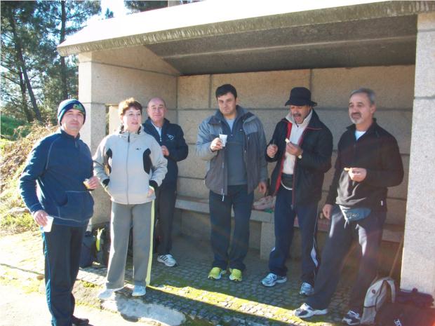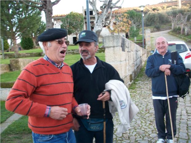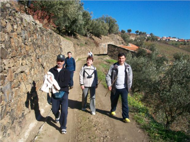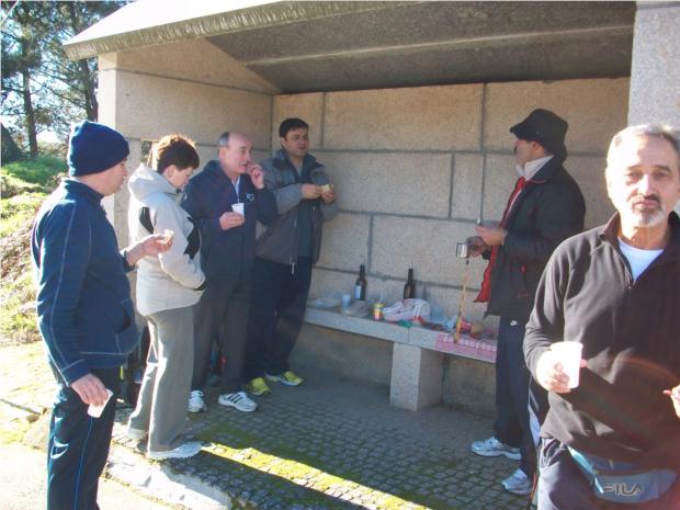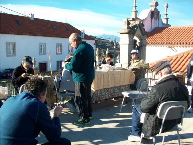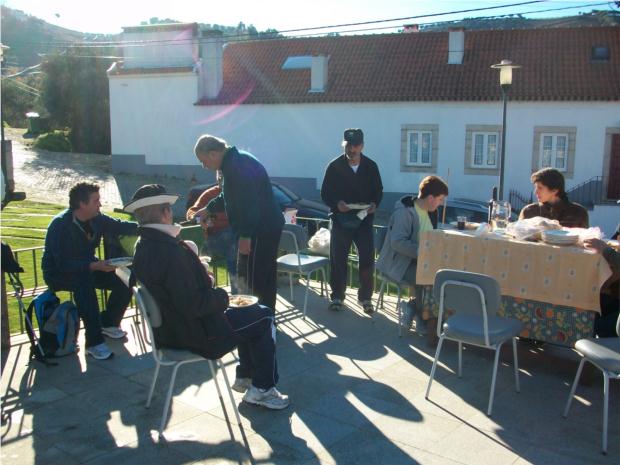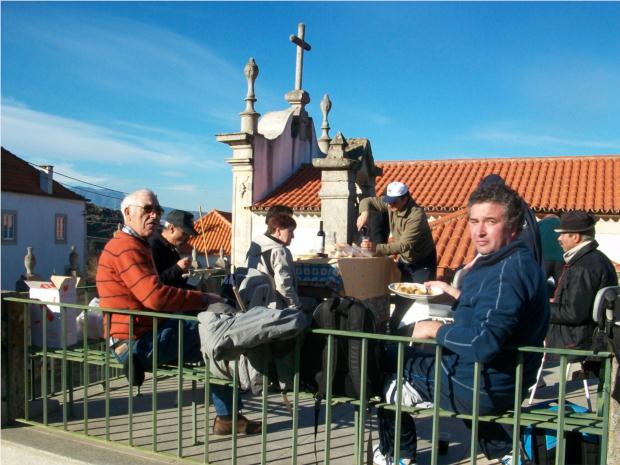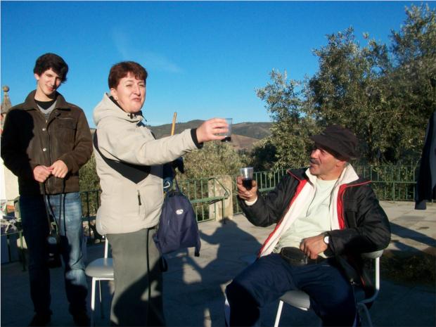 Movidos por um espírito de fé um grupo de caminheiros foi uma vez mais ao Santuário de Santa Eufémia. Saimos de Vila Real pouco depois das 7 horas de uma manhã muito fria, mas em breve as subidas aqueceram os nossos corpos. Depois de uma pausa na Passagem, a fome começou a aparecer e já depois de Abaças, os amigos ZÉS, NOVAIS E VAZ, abriram as suas garrafas e os maravilhosos salpicões, linguiça e queijo para nos deliciarem com essas maravilhas que só no mundo das fadas parecem existir. Depois foi o caminhar até Vila Seca de Poiares, matar aí uma vez mais a sede, seguir até à linda e encantadora Canelas e daí já com o Douro como pano de fundo, descer entre vinhedos até à barragem de Bagauste da Régua. Finalmente uma grande e última subida e lá no alto o maravilhoso Santuário, objectivo da nossa caminhada e o reencontro com mais amigos. De especial porque foi mesmo especial e espetacular, a deliciosa FEIJOADA DE COGUMELOS dos "verdadeiros", confecionado pelas mãos hábeis do amigo CHINA, que nos deliciou a todos. Finalmente e depois de bem bebidos um delicioso pão de ló com o não menos maravilhoso vinho do Porto do nosso amigo SOUSA, pai de um grande amigo que canta e encanta como poucos o sabem fazer. Enfim uma maravilhosa jornada vivida com muita alegria e satisfação e a prometer que outras virão pois esta vida são dois dias e há que aproveitá-los da melhor forma e maneira. Para reviver momentos deliciosos aqui ficam algumas imagens que farão história na vida do Grupo e dos intérpretes.