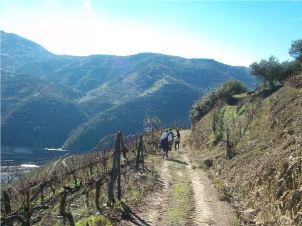 ENTRE VINHEDOS O GRUPO FOI-SE APROXIMANDO DA BARRAGEM DA RÉGUA, LÁ NO FUNDO
