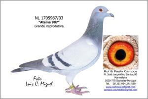 | Pai: 6124698/06 POR - "Hufkens 698" | Mãe: 1705987/03 HOL - "Atema 987" | "Hufkens 698" Raça: Rui & Paulo Campos Macho Azul Consanguíneo da super reprodutora "Hufkens 663
