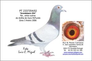 | Pai: 2526354/02 POR - "354" | Mãe: 5759438/05 POR - "Grondelaers 438" | "354" Raça: Rui & Paulo Campos Macho Pedrado Escuro Grande voador.