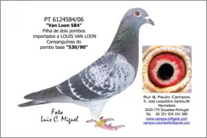 | "Van Loon 584" Raça: Rui & Paulo Campos Fêmea Pedrada Filha de dois pombos importados a Louis van Loon 1/2 irmã da Anilha de Ouro distrital de MFundo em 2008