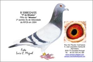 | Pai: 5088324/06 BEL - "Fº do Winston" | Mãe: 6124778/06 POR - "Fª do Joker" | "Fº do Winston" Raça: F. Vandersanden Macho Azul Guias Brancas Filho do "Winston" que foi 1º Pombo As de Velocidade da RFCB em 2004.