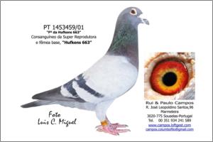 | Pai: 2526351/02 POR - "Fº da Hufkens 663" | Mãe: 3333/09 POR | "Fº da Hufkens 663" Raça: Rui & Paulo Campos Macho Azul Grande reprodutor.