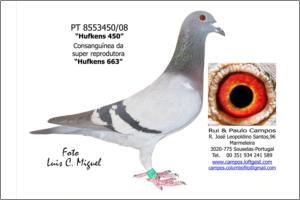 | Pai: 6123371/10 BEL - "Boeckx 371" | Mãe: 8553450/08 POR - "Hufkens 450" | "Boeckx 371" Raça: Karel Boeckx Macho Pedrado Filho da Campeã Provincial, Categ. Borrachos, em 2006