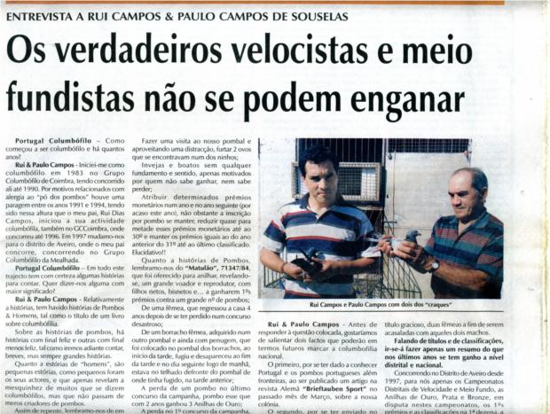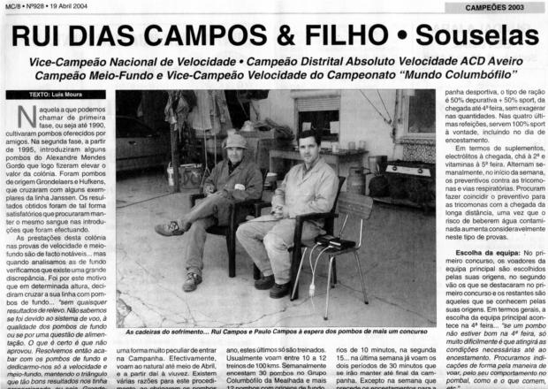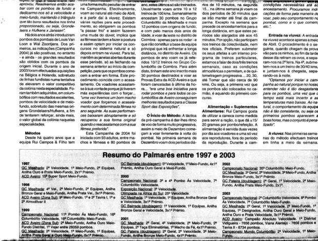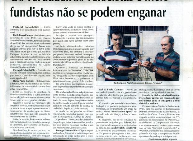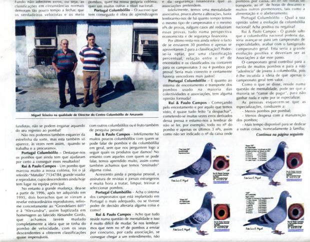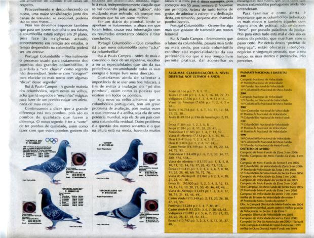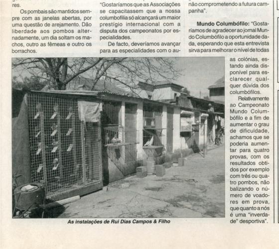 Entrevista no Jornal Mundo Columbófilo nº 928 de 19/04/03