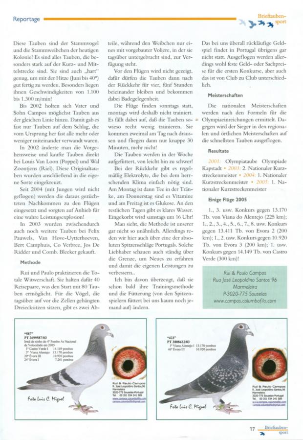 Entrevista na Revista "Tauben Sport" em Março 2006