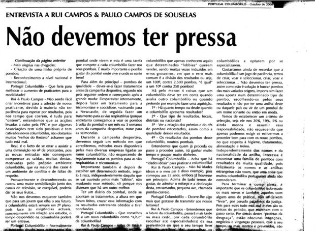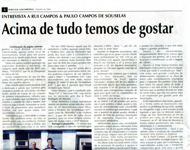 Entrevista no jornal "Portugal Columbófilo" nº 7 de Outubro 2006