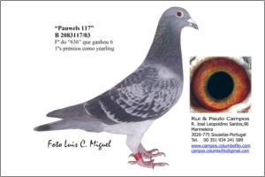 "Pauwels 117" Raça: Félix Pauwels Fêmea Pedrada Grande Reprodutora. Mae do 4626132/04 melhor pombo de MF no Sector 8 e Zona 3 em 2006 no distrito de Aveiro.