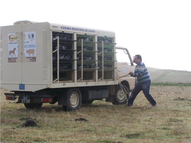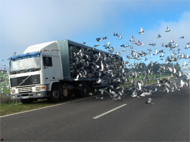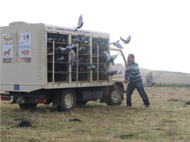 Salta para o distrito do Porto dia 22/03/2008 9 Camioes apostos para soltar rumo a norte 70 mil pombos.