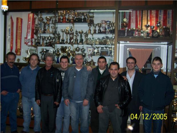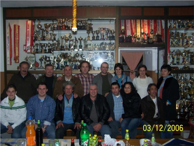 Em primeiro lugar é de salientar a magnífica sala de trofeus. O grupo dos desniotados: B.Racha, Tó Zé, Lemos, César, José Manuel, Carlos Franco, Asas, R.Racha, Andre, ( Fotografo Oscar )