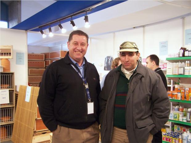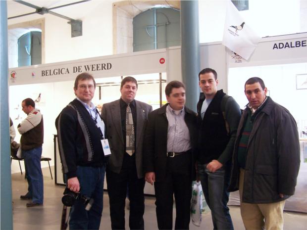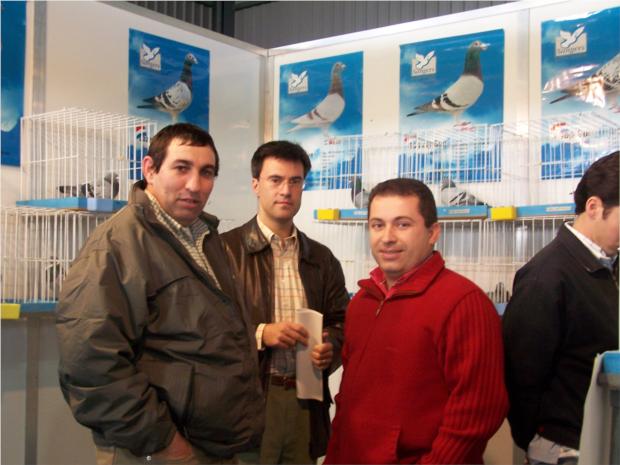 Carlos Franco mais Rui Lobato no stand de Marcel Sanger da Holanda, na primeira vez este o columbofilo holandes expôs pombos numa Exposição em Portugal.